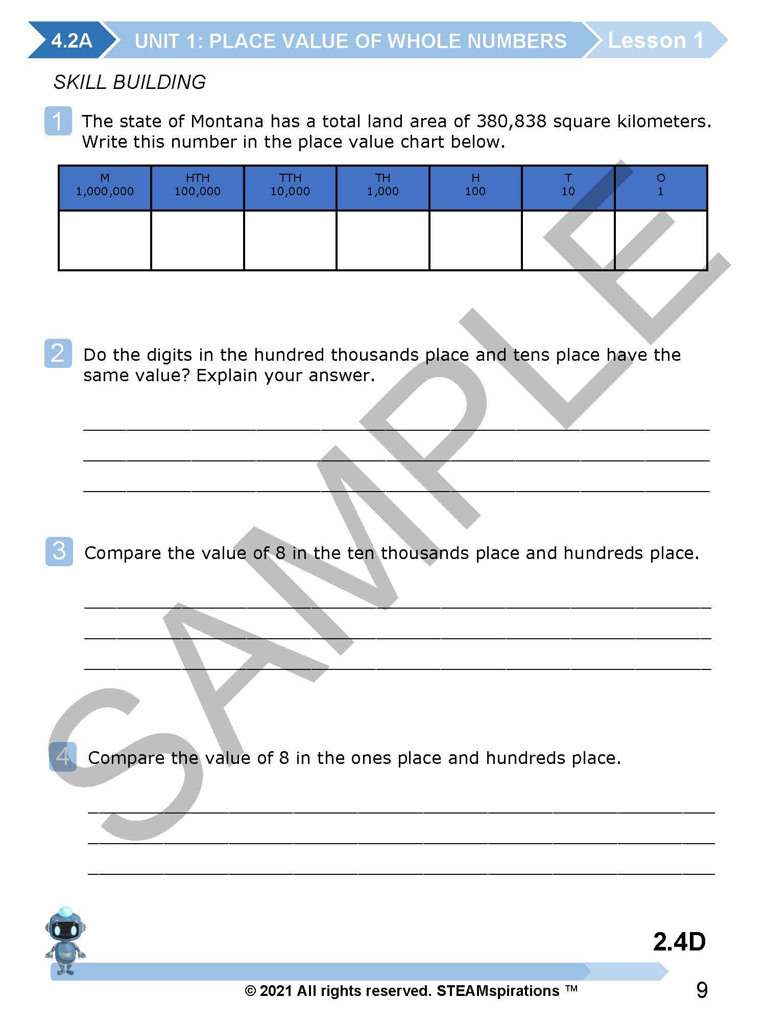 - Skill Building/Independent Practice: Lessons are designed to strengthen students’ math skills and problem-solving abilities through word problems, including STAAR 2.0 questions marked by a small star symbol.