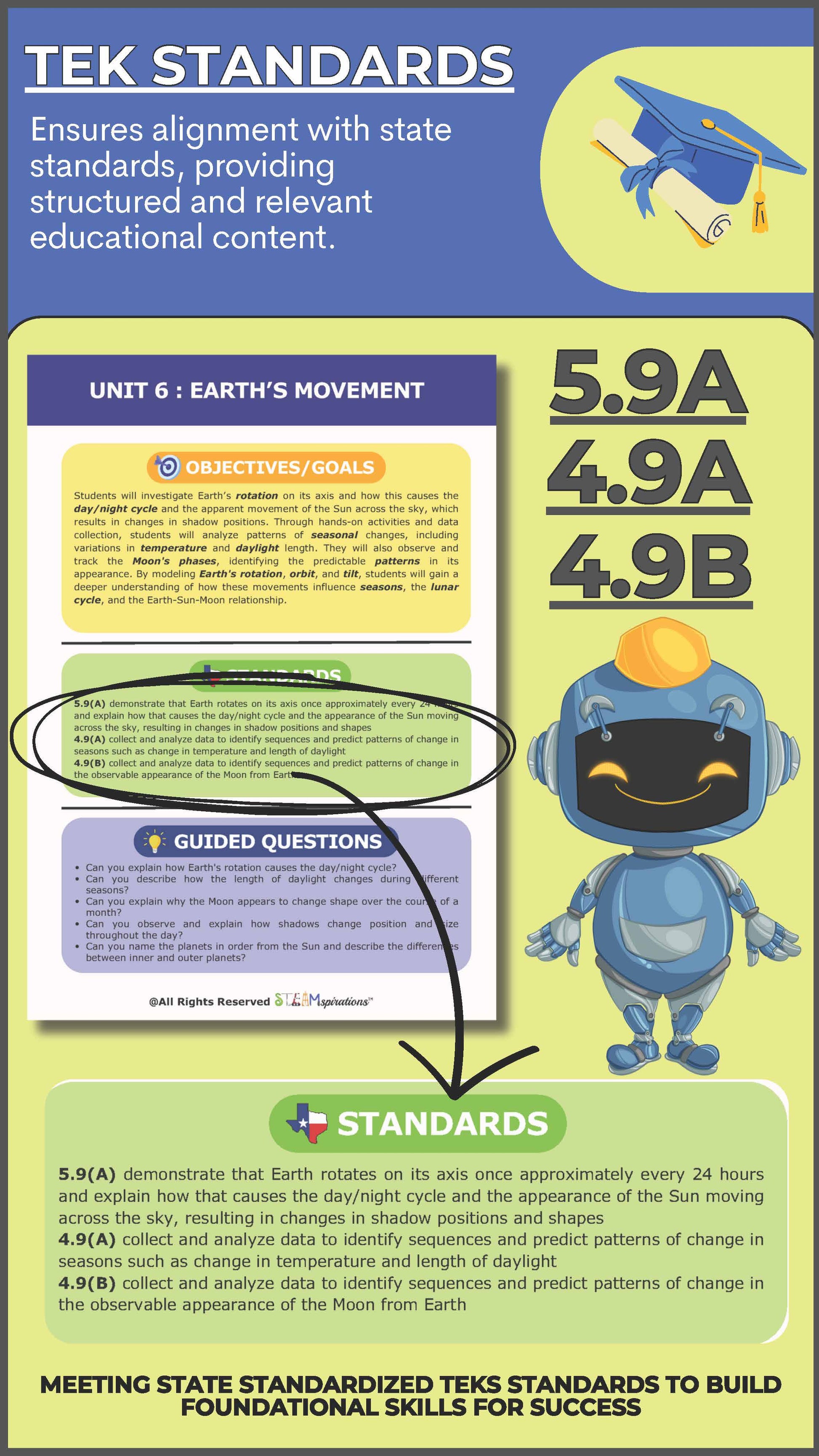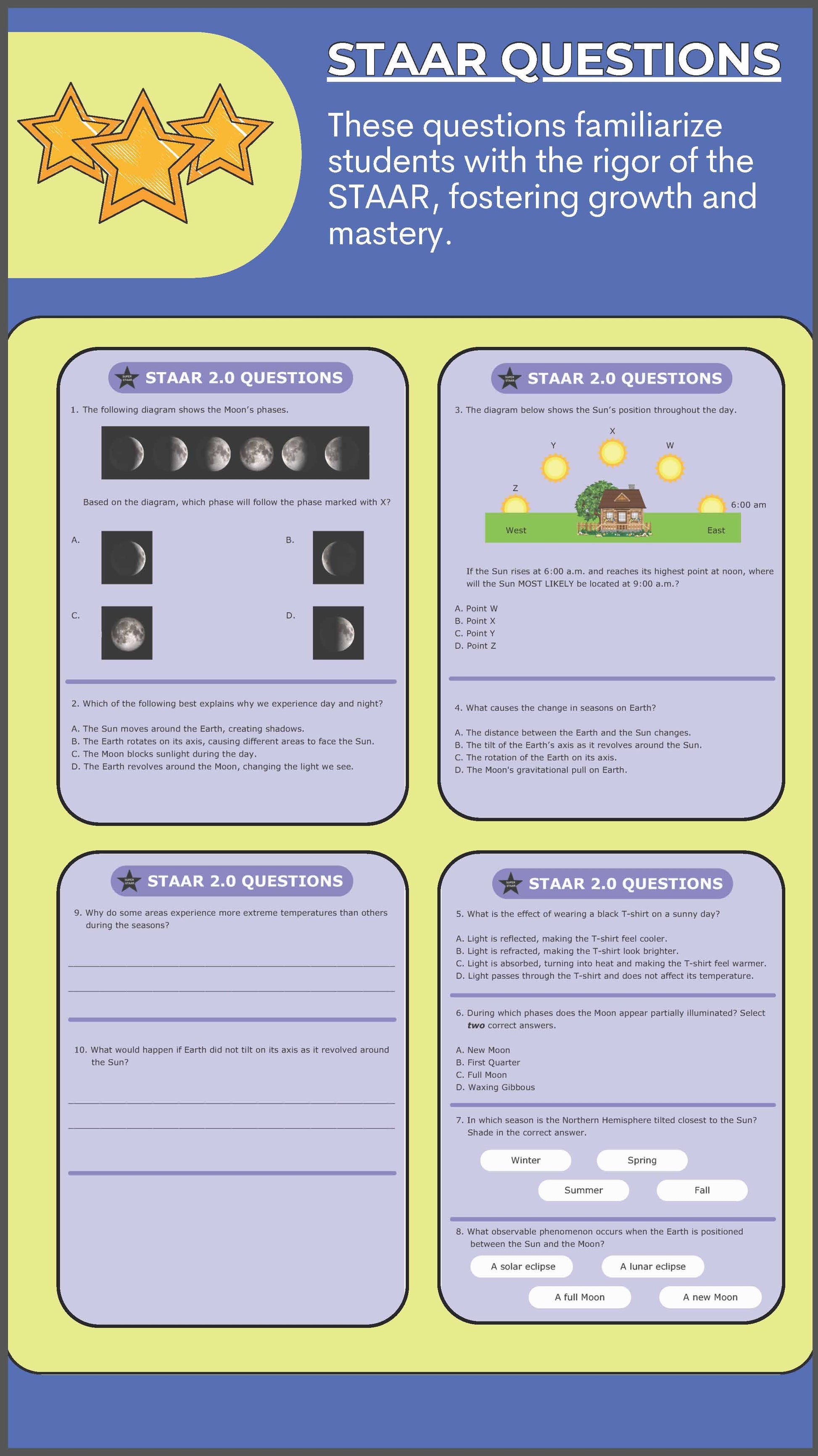 With periodic checkpoints and STAAR 2.0-aligned assessments, students demonstrate mastery of key concepts, building confidence in their understanding of Earth’s movements and their significance.