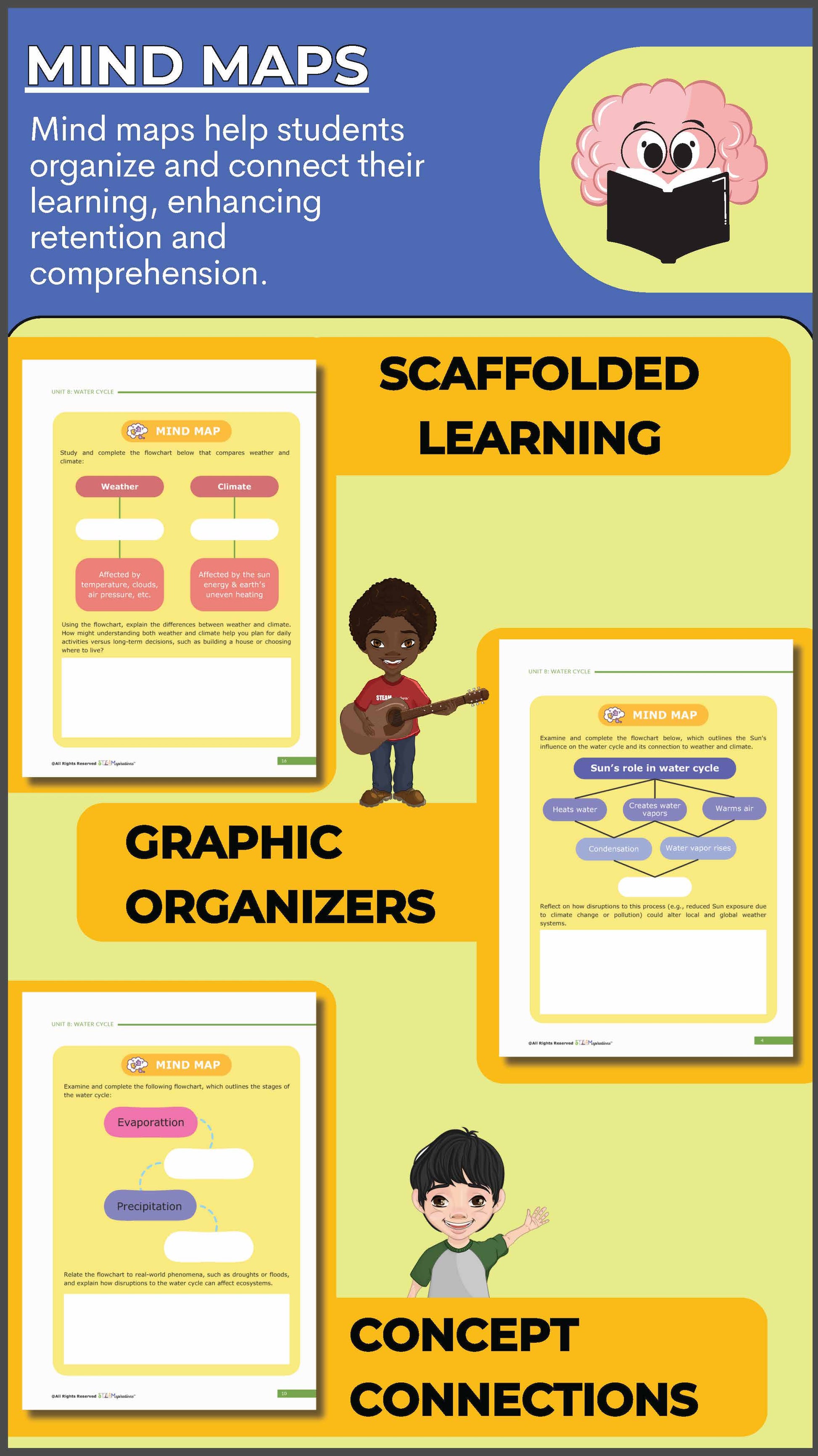 - Mind Maps and Flowcharts: Connecting stages of the water cycle to weather and climate.