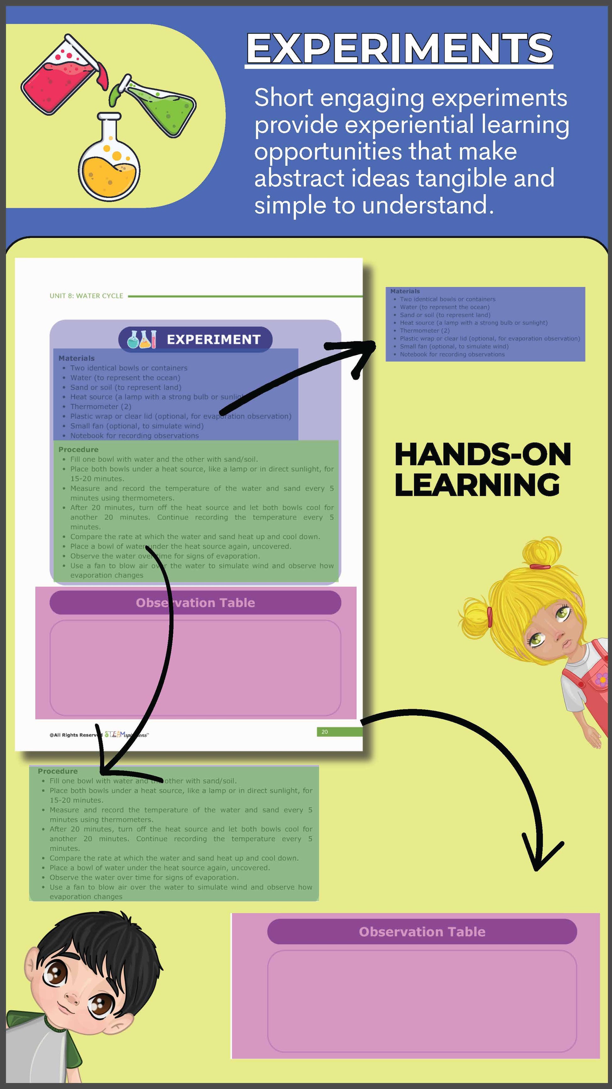 - Evaporation and Condensation Models: Using plastic cups and heat sources to simulate the Sun’s impact.