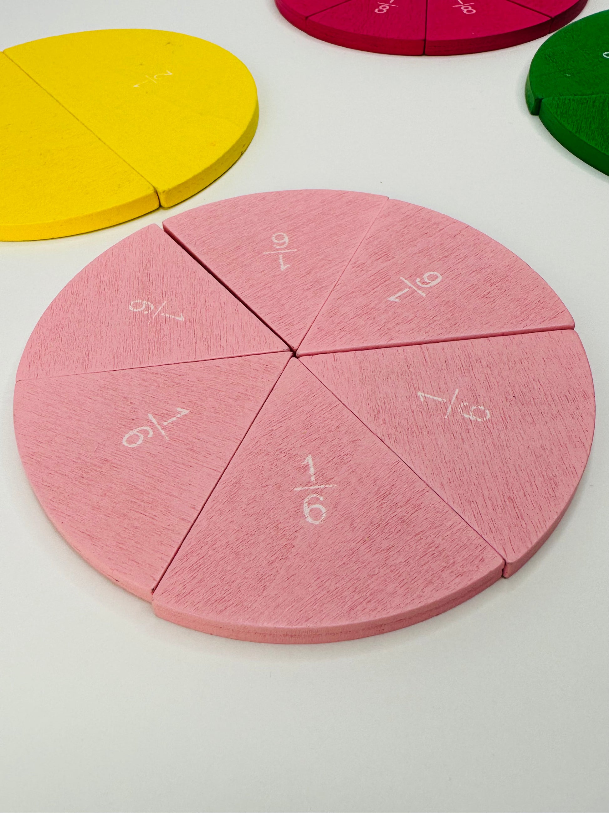Introduce your child to the fascinating world of fractions with the Disc Fraction Set. This interactive Montessori teaching aid helps children understand the concept of fractions, build essential math skills, and gain confidence in their mathematical abilities. Watch their progress as they solve complex fraction puzzles and enjoy the satisfaction of mastering new skills.