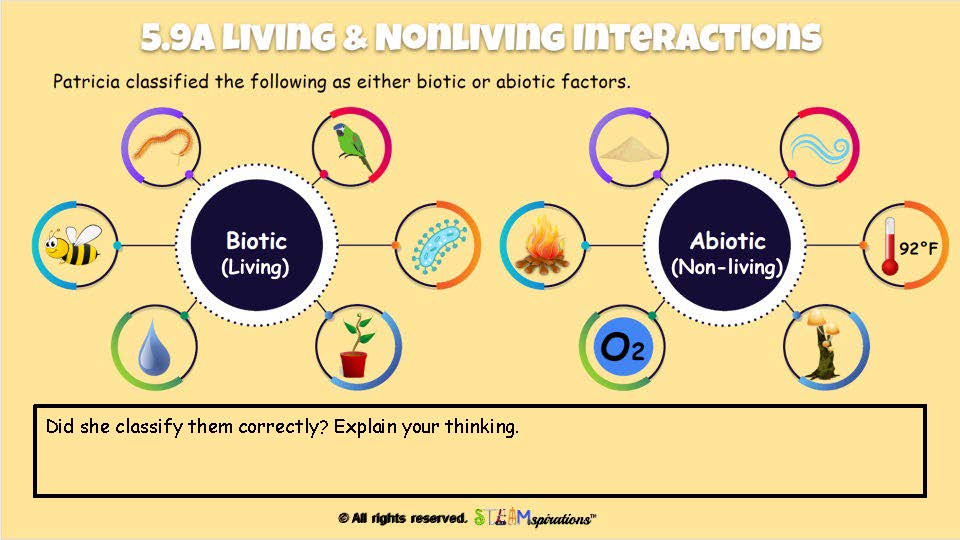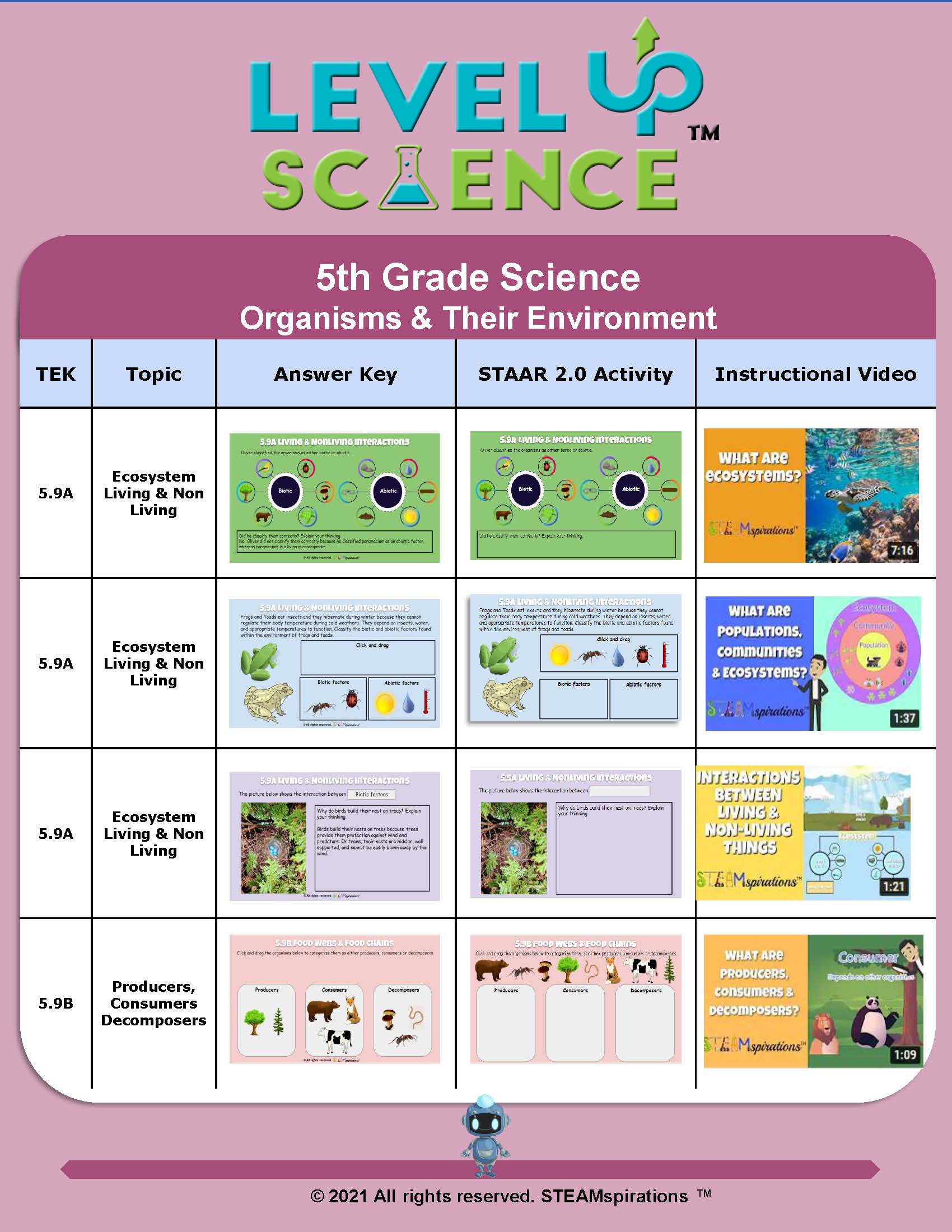 - 5.9A Observe the way organisms live and survive in their ecosystem by interacting with the living and nonliving components