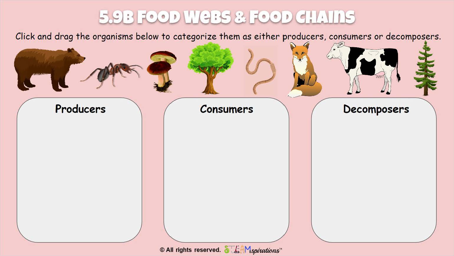 - 5.9B Describe the flow of energy within a food web, including the roles of the Sun, producers, consumers, and decomposers