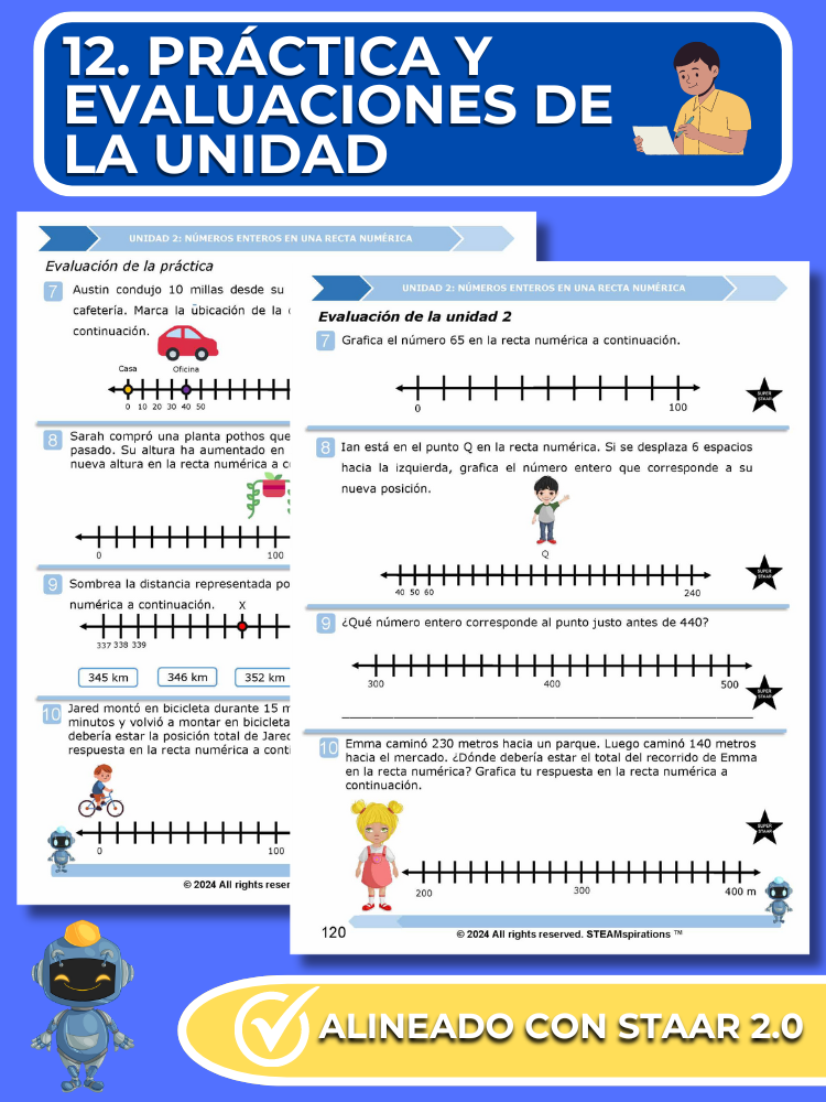 Prácticas y Evaluaciones de Unidades: Reflejando el rigor del examen STAAR, cada unidad incluye una evaluación de práctica y una evaluación de unidad integral con preguntas STAAR 2.0.