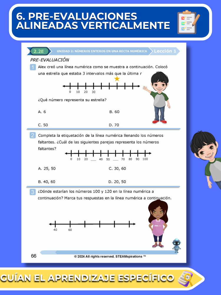 Pre-Evaluaciones Alineadas Verticalmente: Nuestro enfoque comienza cada unidad con una pre-evaluación sucinta que se alinea verticalmente con los nuevos TEKs introducidos, permitiendo un aprendizaje enfocado y efectivo.