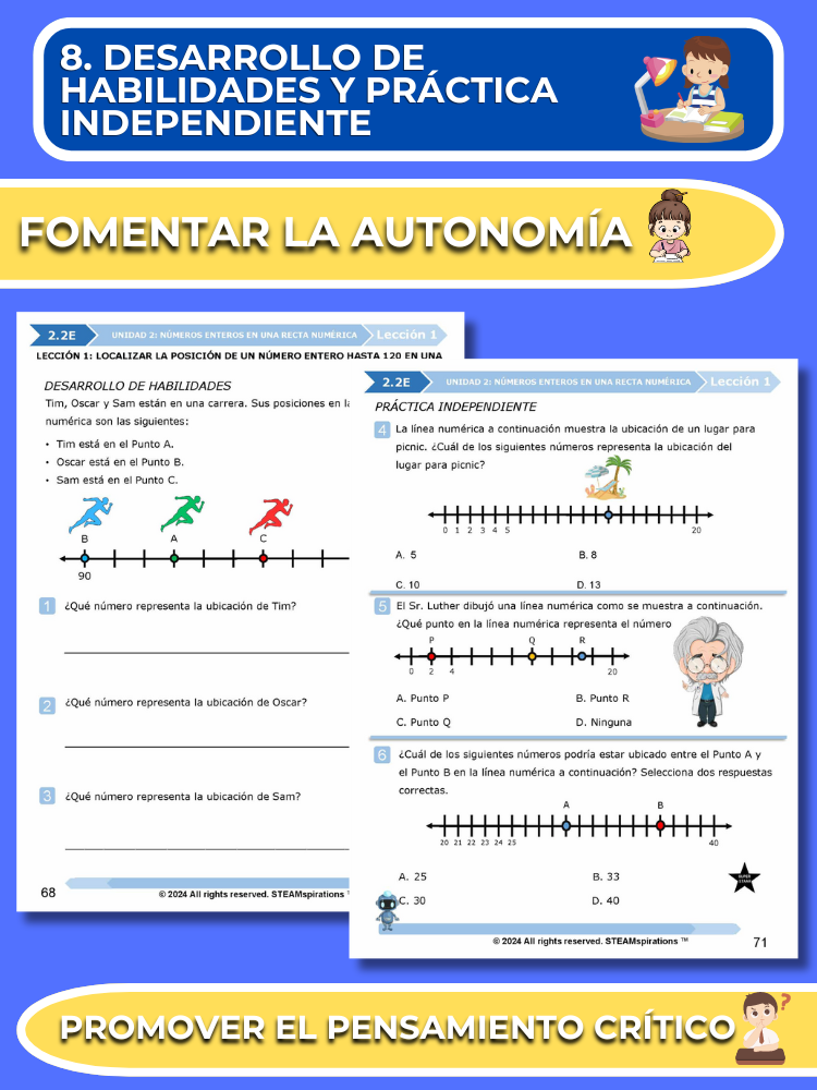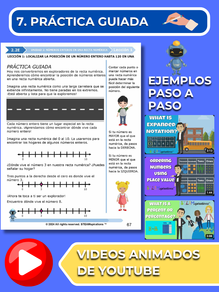 Práctica Guiada: Cada unidad incluye secciones de práctica guiada diseñadas para enseñar efectivamente nuevos TEKs/Habilidades. Estas se pueden utilizar junto con nuestros atractivos videos de instrucción animados, mejorando la experiencia de aprendizaje.