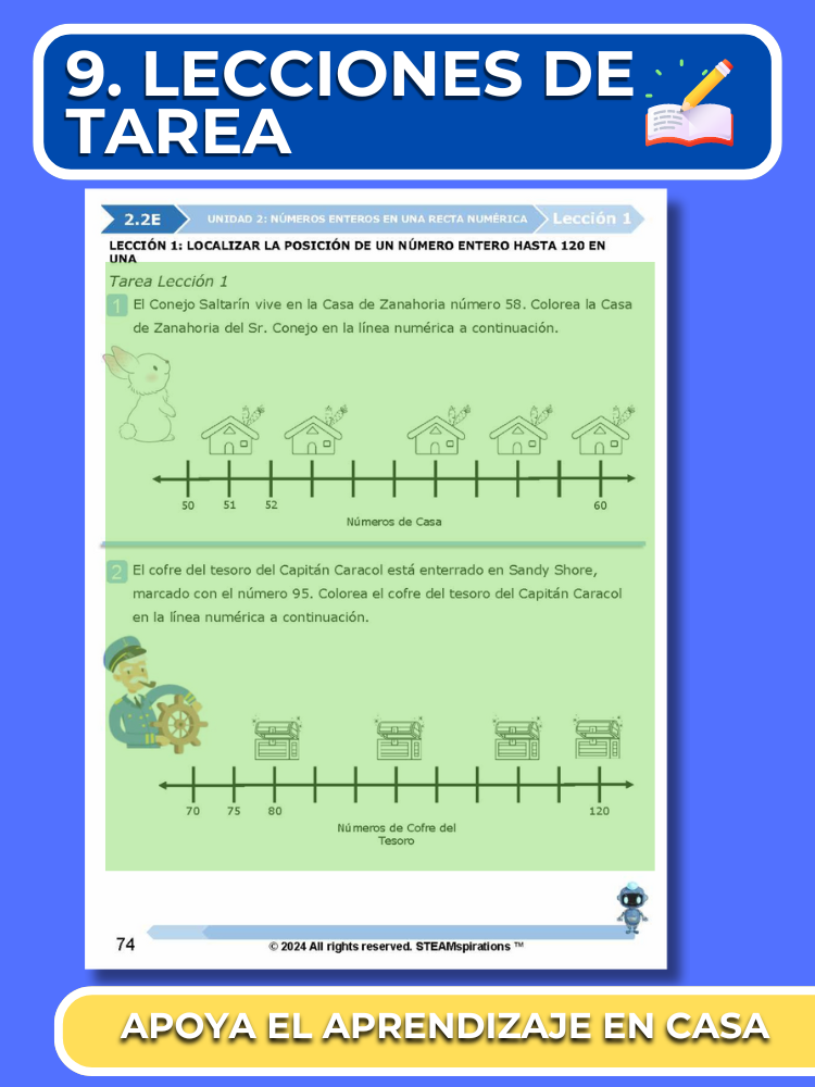 Vocabulario de Matemáticas y Preguntas Guiadas: Cada unidad introduce nuevo vocabulario de matemáticas y preguntas guiadas que pueden servir como objetivo del día o metas diarias para los maestros. Este enfoque mejora la comprensión y aplicación de conceptos y términos matemáticos, facilitando una comunicación más clara y un aprendizaje más profundo.