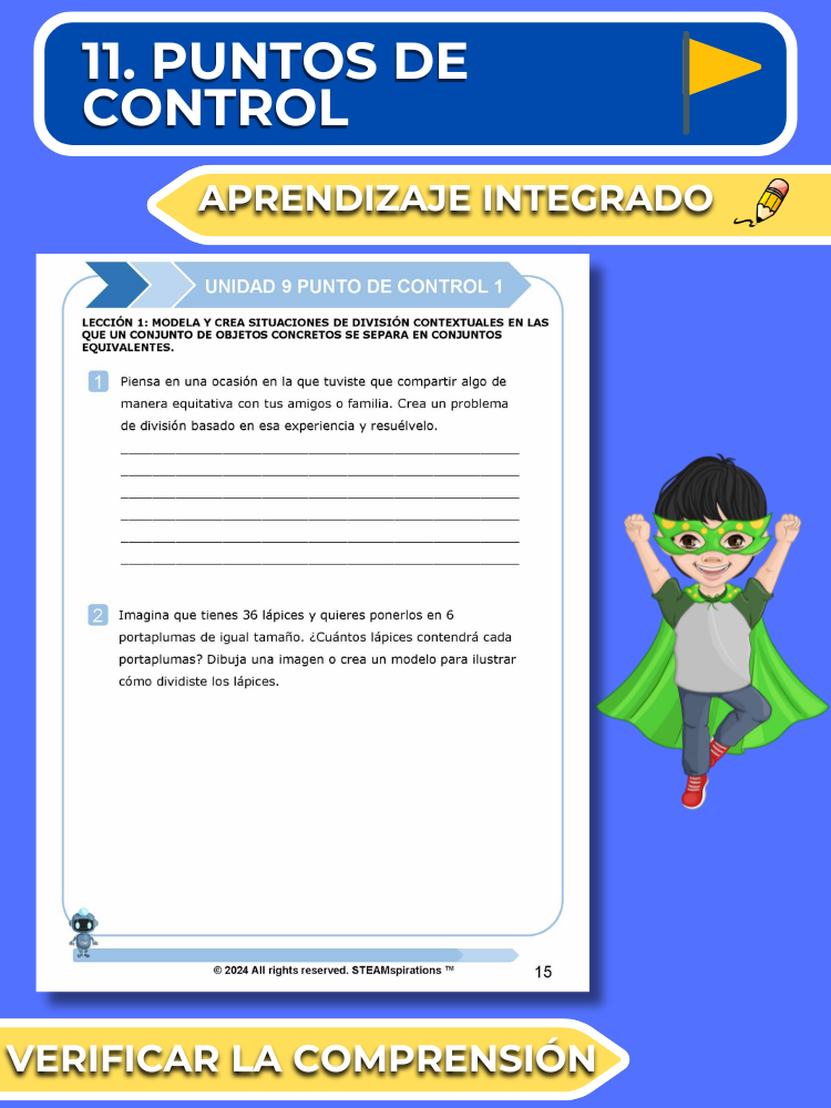 - Puntos de Control: Al final de cada lección, los puntos de control incluyen un ejercicio de escritura y una pregunta de resolución de problemas para evaluar la comprensión y consolidar el aprendizaje.