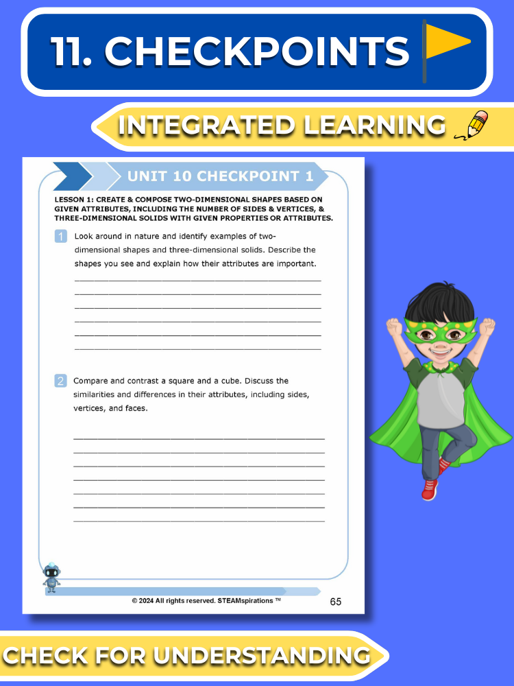 - Checkpoints: At the end of each lesson, checkpoints feature a writing exercise and a problem-solving question to assess comprehension and consolidate learning.