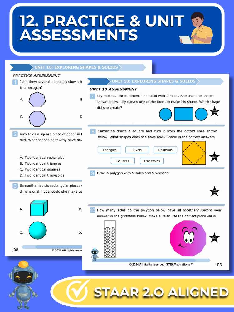 - Practice and Unit Assessments: Reflecting the STAAR test's rigor, each unit includes a practice assessment and a comprehensive unit assessment featuring STAAR 2.0 questions.