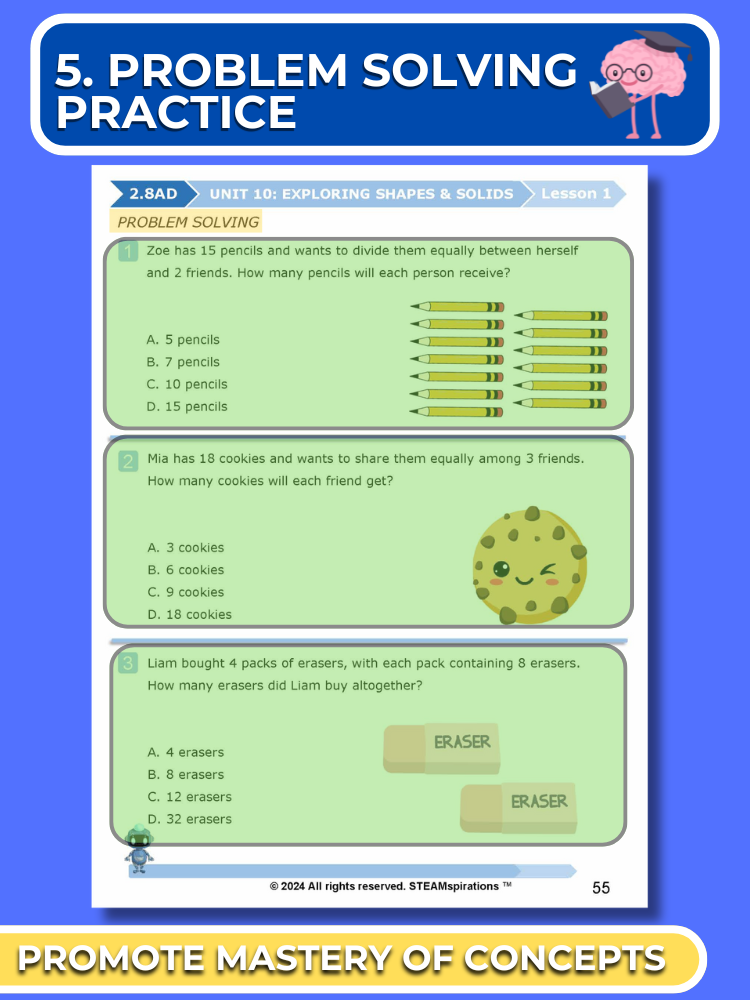 - Problem Solving Process: Each unit introduces students to a thought-provoking problem-solving process that stirs curiosity and enhances analytical thinking skills.