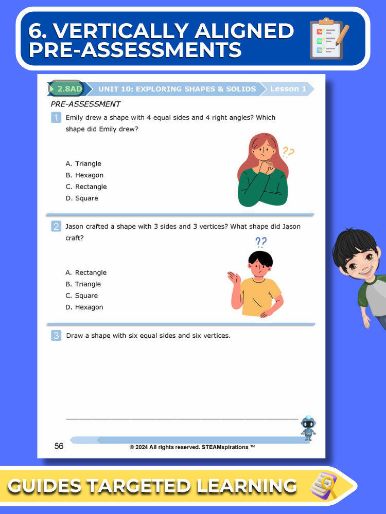- Vertically Aligned Pre-Assessments: Our approach begins each unit with a succinct pre-assessment that aligns vertically with the new TEKs introduced, enabling focused and effective learning.