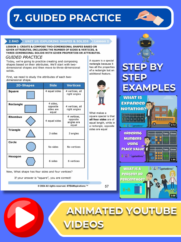 - Guided Practice: Every unit includes guided practice sections designed to effectively teach new TEKs/Skills. These can be utilized alongside our engaging animated instructional videos, enhancing the learning experience.