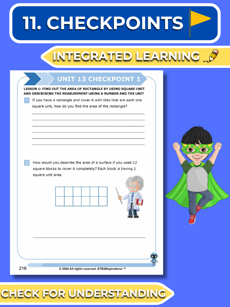 - Checkpoints: At the end of each lesson, checkpoints feature a writing exercise and a problem-solving question to assess comprehension and consolidate learning.
