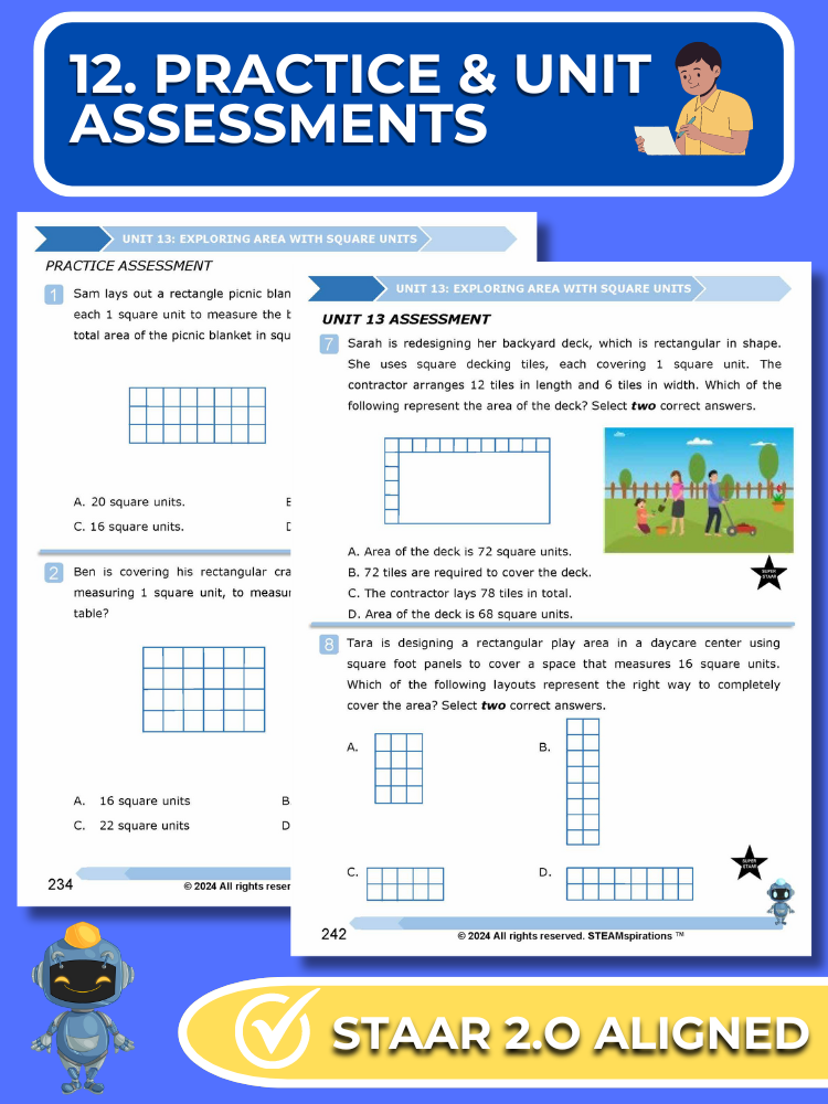 - Practice and Unit Assessments: Reflecting the STAAR test's rigor, each unit includes a practice assessment and a comprehensive unit assessment featuring STAAR 2.0 questions.