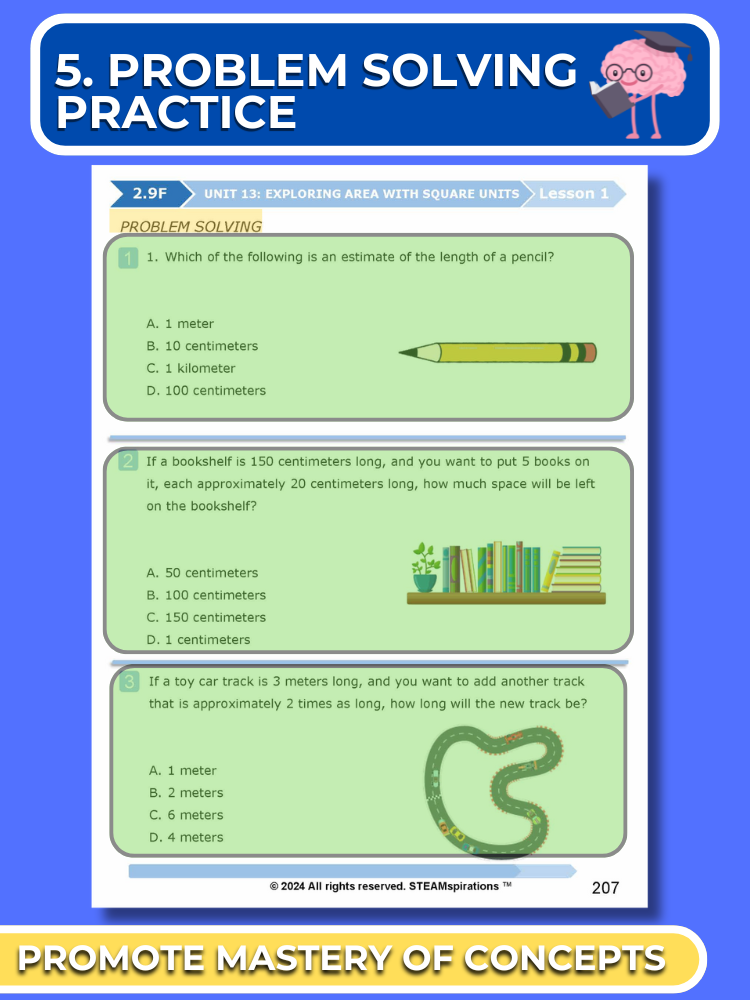 - Problem Solving Process: Each unit introduces students to a thought-provoking problem-solving process that stirs curiosity and enhances analytical thinking skills.