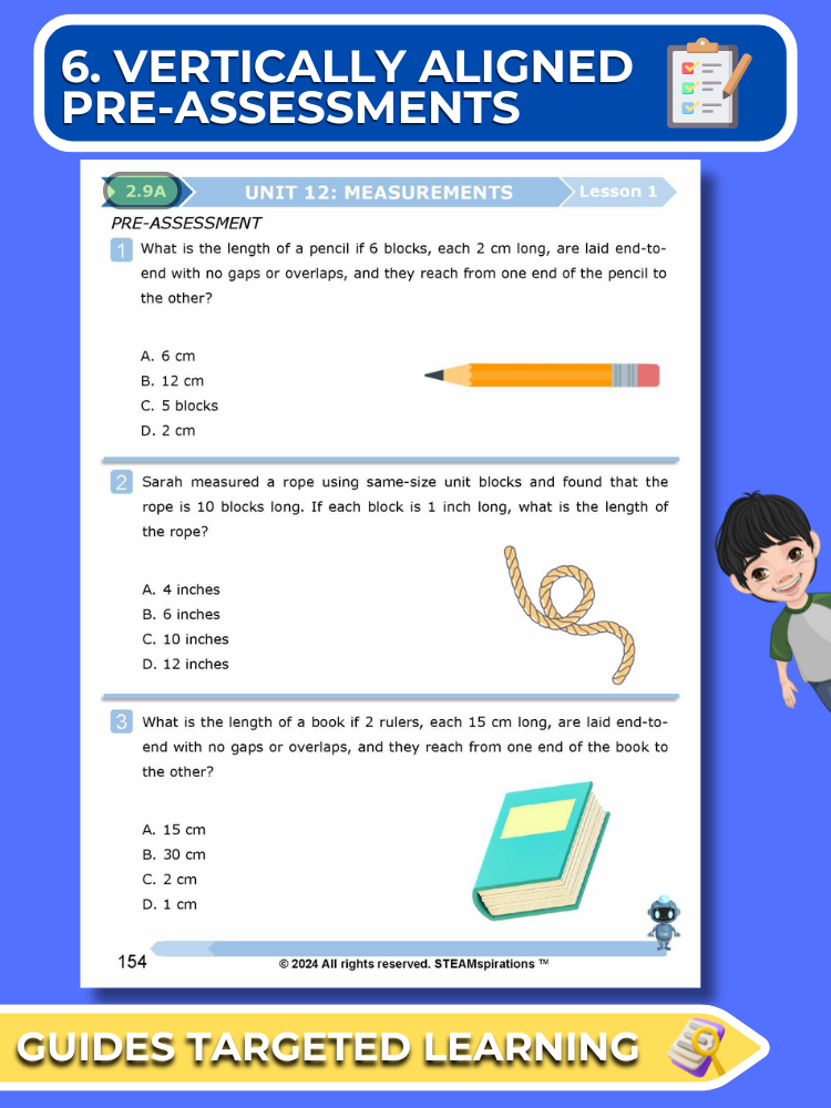 - Vertically Aligned Pre-Assessments: Our approach begins each unit with a succinct pre-assessment that aligns vertically with the new TEKs introduced, enabling focused and effective learning.
