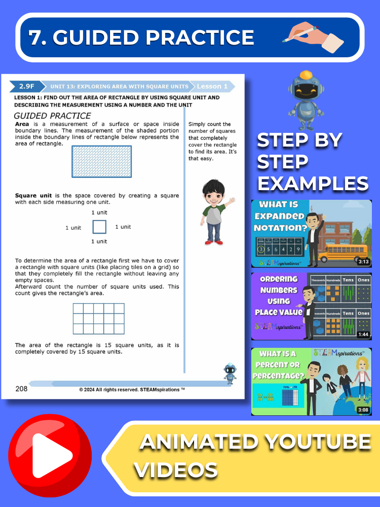 - Guided Practice: Every unit includes guided practice sections designed to effectively teach new TEKs/Skills. These can be utilized alongside our engaging animated instructional videos, enhancing the learning experience.