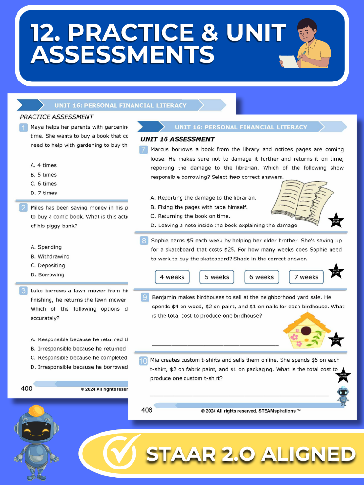 - Practice and Unit Assessments: Reflecting the STAAR test's rigor, each unit includes a practice assessment and a comprehensive unit assessment featuring STAAR 2.0 questions.