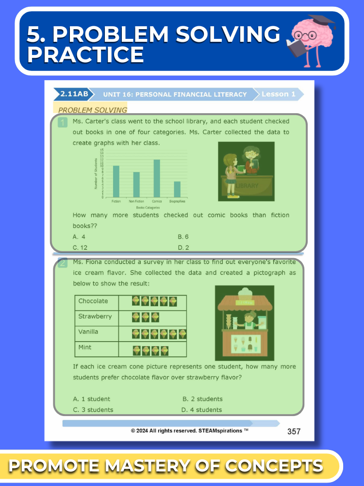 - Problem Solving Process: Each unit introduces students to a thought-provoking problem-solving process that stirs curiosity and enhances analytical thinking skills.