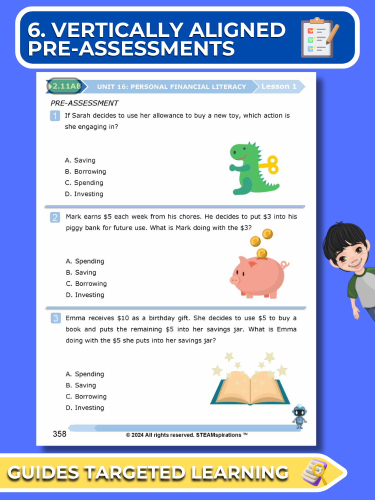 - Vertically Aligned Pre-Assessments: Our approach begins each unit with a succinct pre-assessment that aligns vertically with the new TEKs introduced, enabling focused and effective learning.