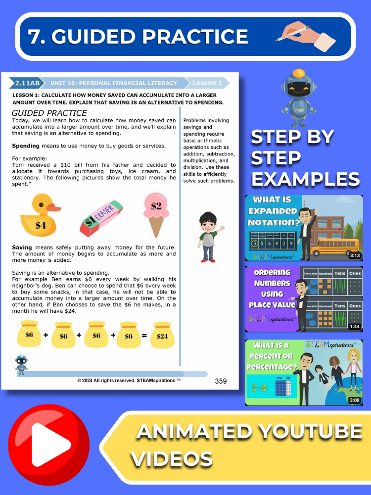 - Guided Practice: Every unit includes guided practice sections designed to effectively teach new TEKs/Skills. These can be utilized alongside our engaging animated instructional videos, enhancing the learning experience.