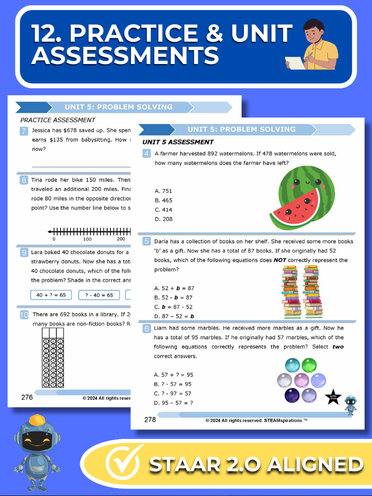 - Practice and Unit Assessments: Reflecting the STAAR test's rigor, each unit includes a practice assessment and a comprehensive unit assessment featuring STAAR 2.0 questions.