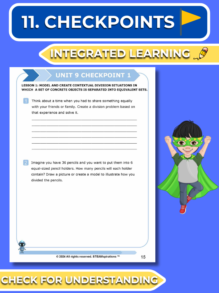 - Checkpoints: At the end of each lesson, checkpoints feature a writing exercise and a problem-solving question to assess comprehension and consolidate learning.