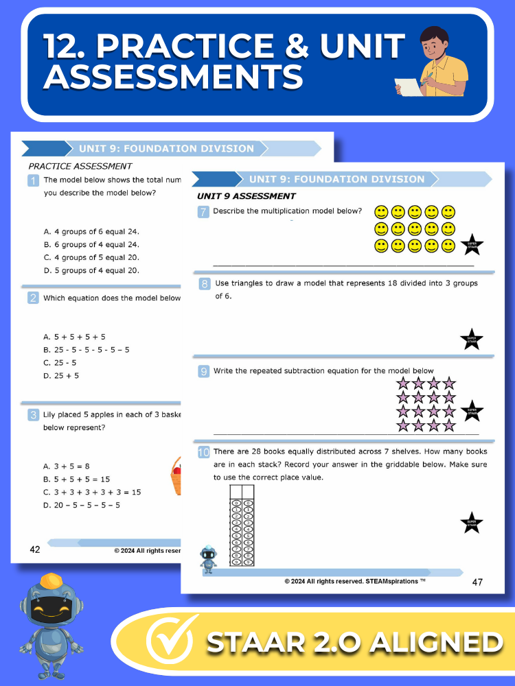 - Practice and Unit Assessments: Reflecting the STAAR test's rigor, each unit includes a practice assessment and a comprehensive unit assessment featuring STAAR 2.0 questions.