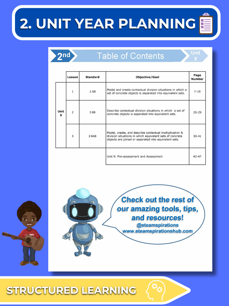 - Unit Year Planning: Our curriculum breaks down each TEK into manageable segments, scaffolding learning for complete mastery. This methodical approach allows students to fully understand each part of the TEK as it is taught throughout the lessons, making the process more straightforward for educators.