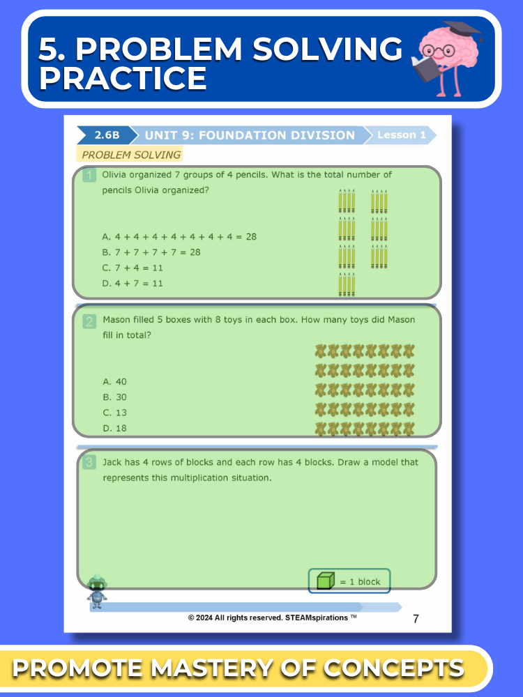 - Problem Solving Process: Each unit introduces students to a thought-provoking problem-solving process that stirs curiosity and enhances analytical thinking skills.