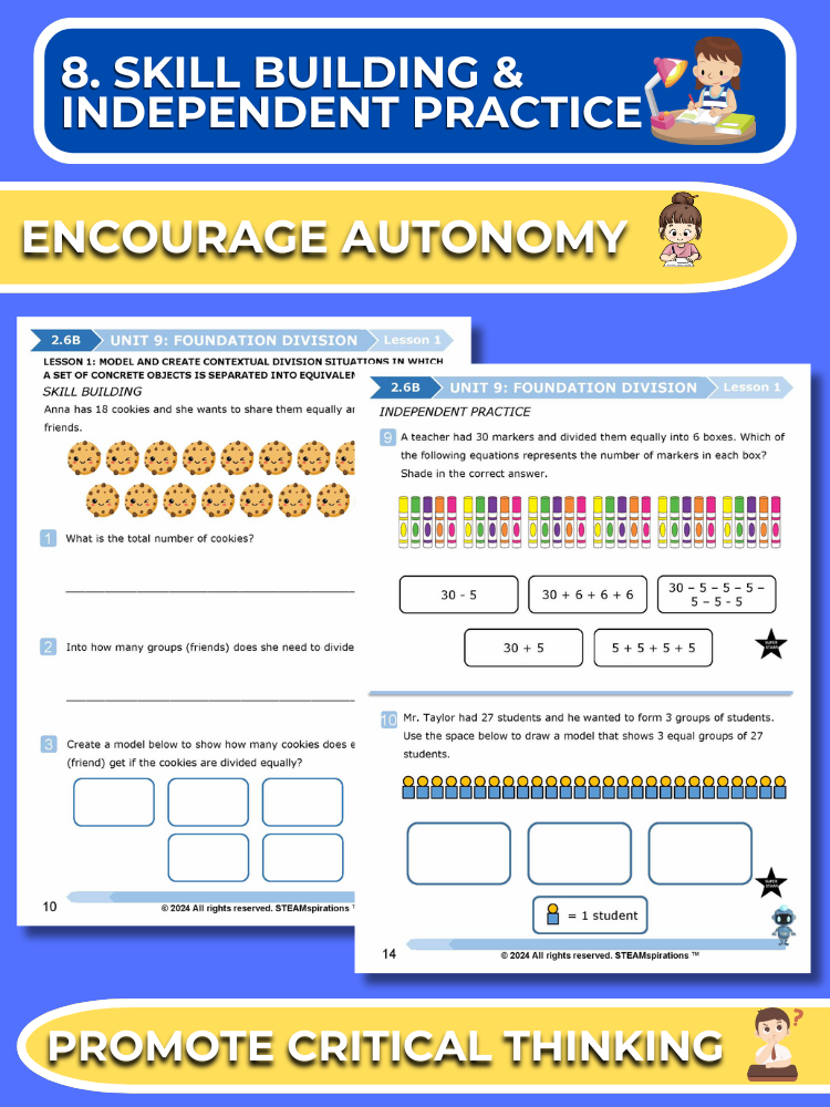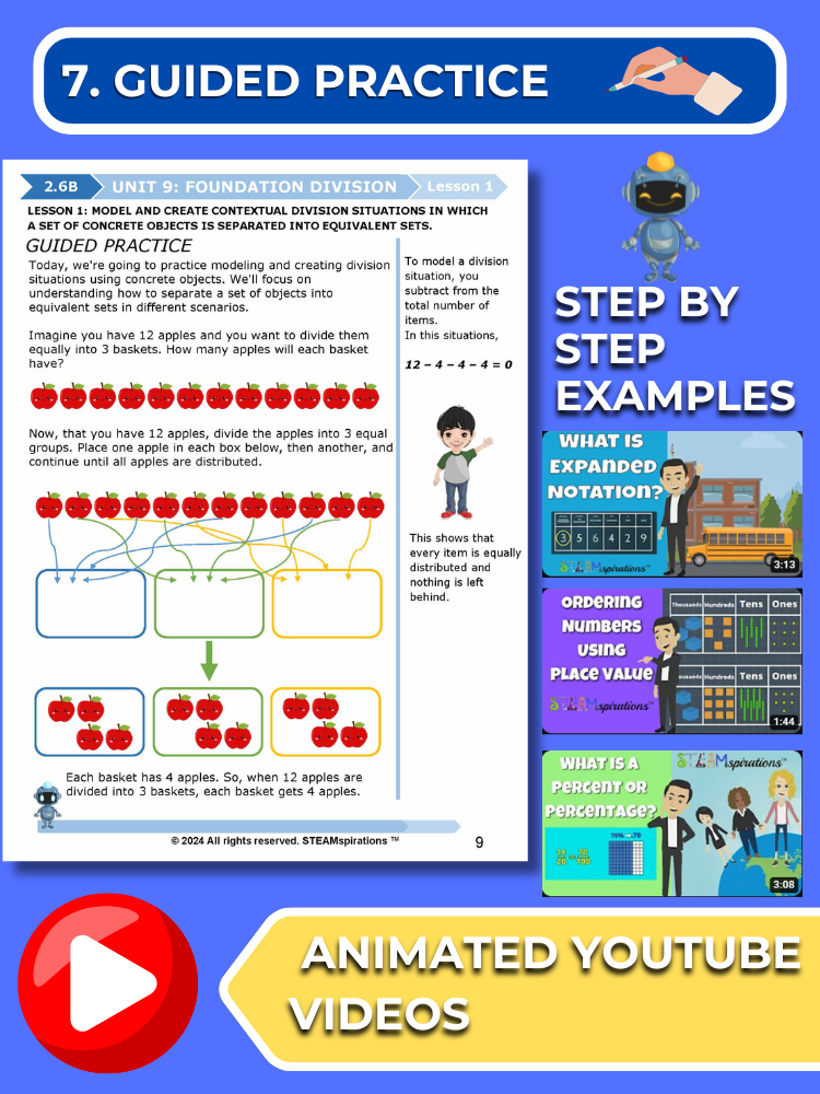 - Guided Practice: Every unit includes guided practice sections designed to effectively teach new TEKs/Skills. These can be utilized alongside our engaging animated instructional videos, enhancing the learning experience.