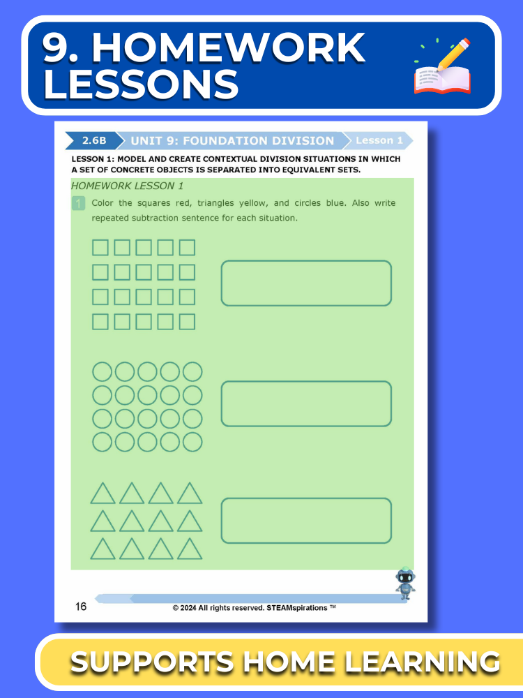 - Math Vocabulary and Guided Questions: Each unit introduces new math vocabulary and guided questions that can serve as the objective of the day or daily goals for teachers. This approach enhances understanding and application of mathematical concepts and terms, facilitating clearer communication and deeper learning.