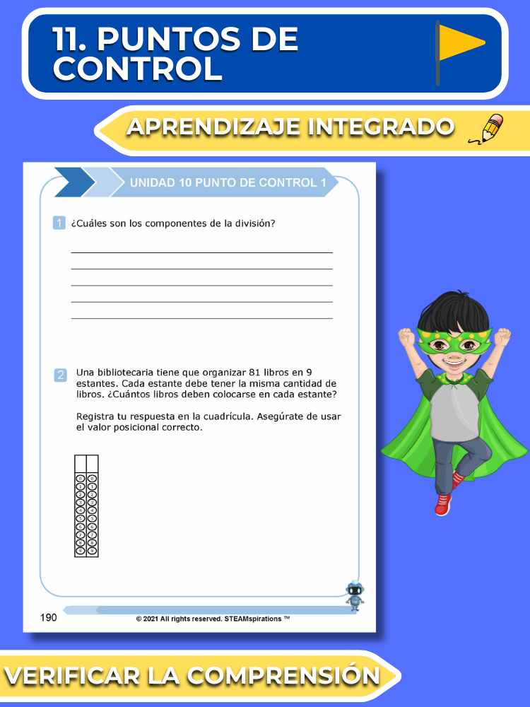 Puntos de Control: Al final de cada lección, los puntos de control incluyen un ejercicio de escritura y una pregunta de resolución de problemas para evaluar la comprensión y consolidar el aprendizaje.