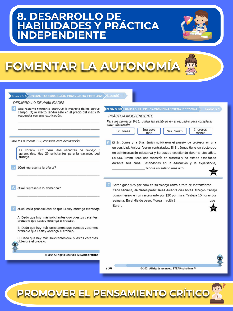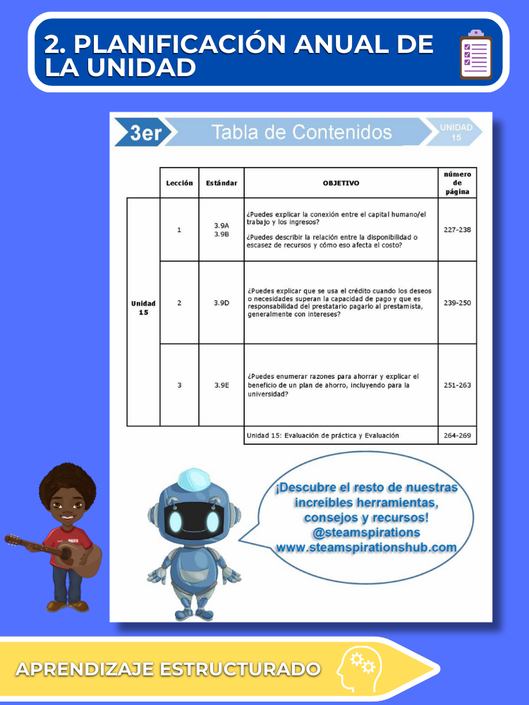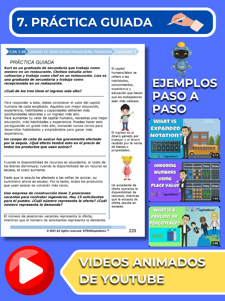 Práctica Guiada: Cada unidad incluye secciones de práctica guiada diseñadas para enseñar efectivamente nuevos TEKs/Habilidades. Estas se pueden utilizar junto con nuestros atractivos videos de instrucción animados, mejorando la experiencia de aprendizaje.