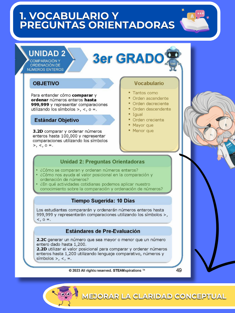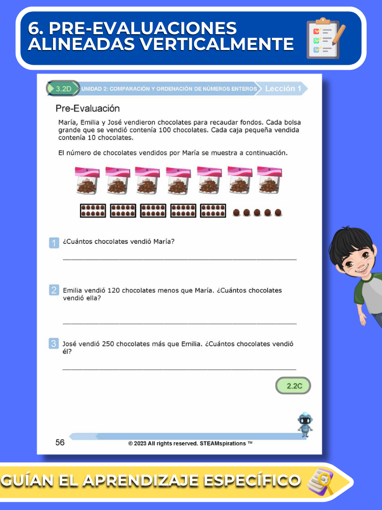 Pre-Evaluaciones Alineadas Verticalmente: Nuestro enfoque comienza cada unidad con una pre-evaluación sucinta que se alinea verticalmente con los nuevos TEKs introducidos, permitiendo un aprendizaje enfocado y efectivo.
