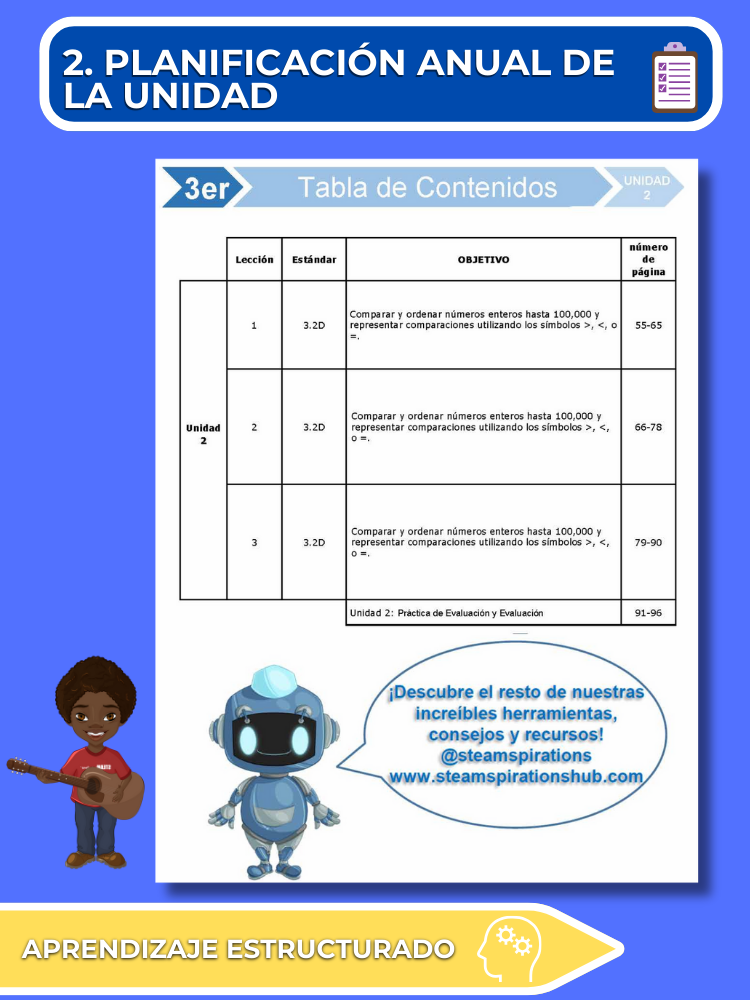 Planificación Anual de Unidades: Nuestro plan de estudios desglosa cada TEK en segmentos manejables, construyendo el aprendizaje para un dominio completo. Este enfoque metódico permite a los estudiantes comprender completamente cada parte del TEK mientras se enseña a lo largo de las lecciones, haciendo el proceso más sencillo para los educadores.