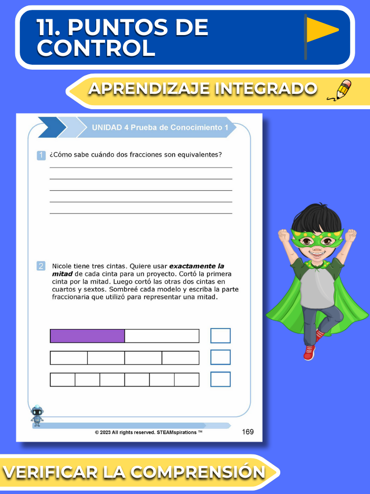 Puntos de Control: Al final de cada lección, los puntos de control incluyen un ejercicio de escritura y una pregunta de resolución de problemas para evaluar la comprensión y consolidar el aprendizaje.