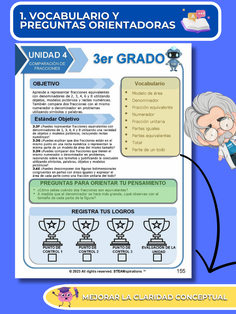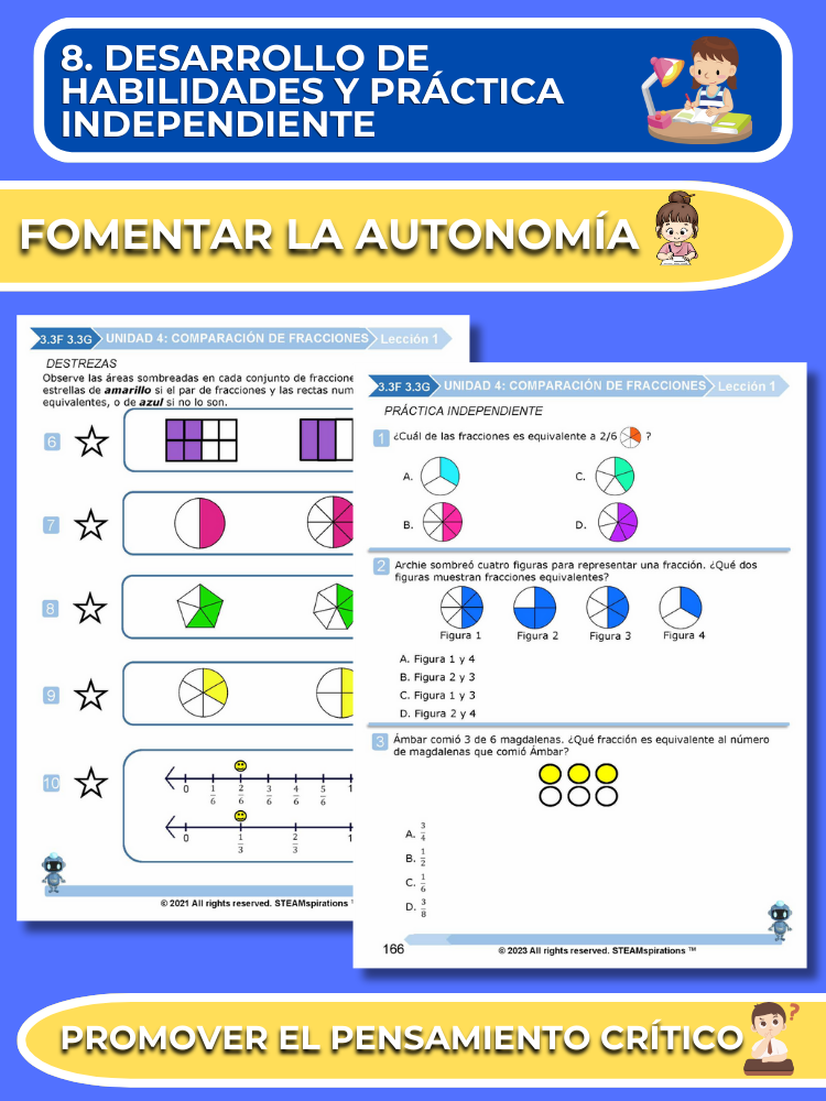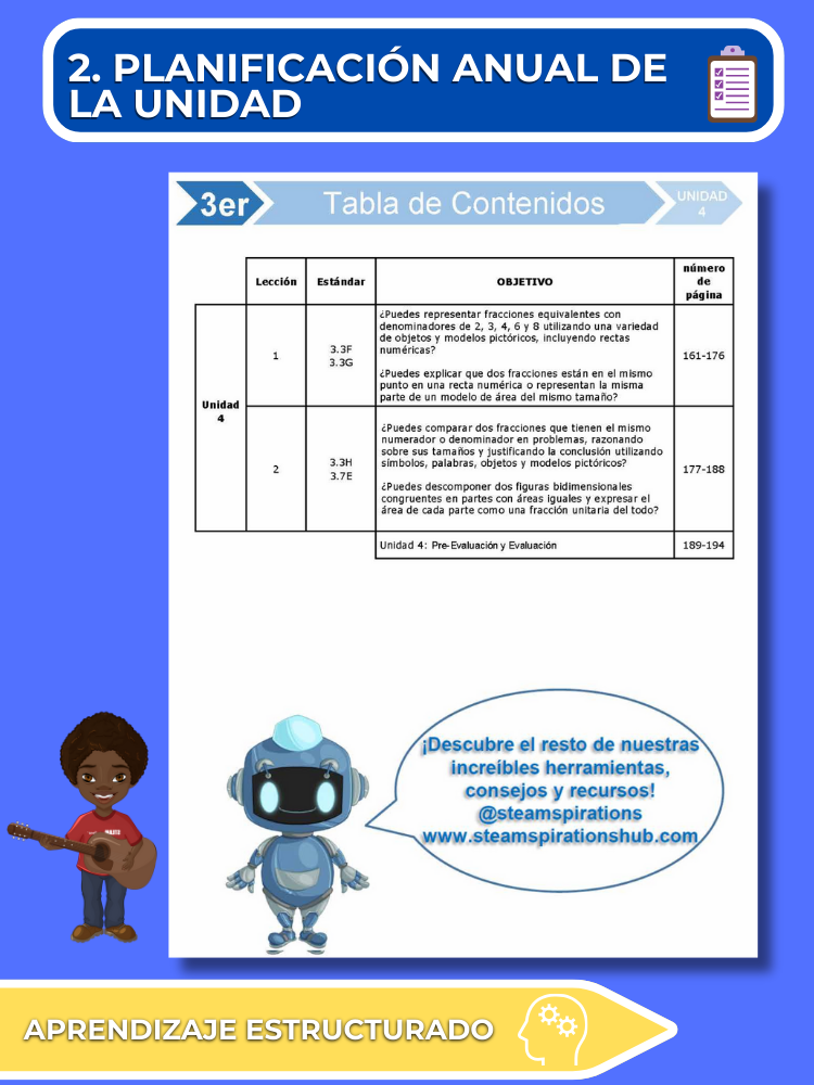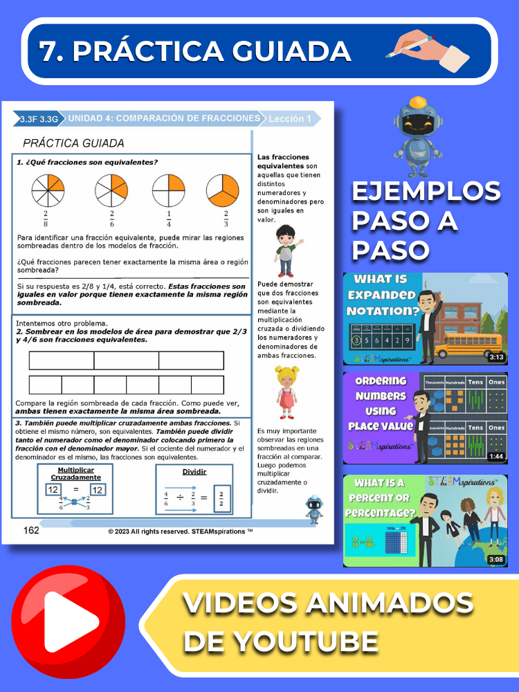 Práctica Guiada: Cada unidad incluye secciones de práctica guiada diseñadas para enseñar efectivamente nuevos TEKs/Habilidades. Estas se pueden utilizar junto con nuestros atractivos videos de instrucción animados, mejorando la experiencia de aprendizaje.
