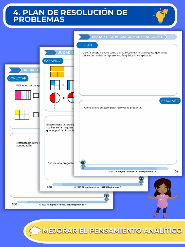 Proceso de Resolución de Problemas: Cada unidad presenta a los estudiantes un proceso de resolución de problemas que provoca curiosidad y mejora las habilidades de pensamiento analítico.