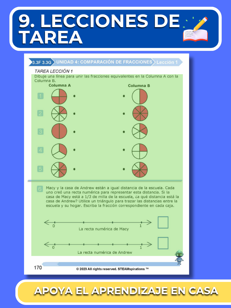 Vocabulario de Matemáticas y Preguntas Guiadas: Cada unidad introduce nuevo vocabulario de matemáticas y preguntas guiadas que pueden servir como objetivo del día o metas diarias para los maestros. Este enfoque mejora la comprensión y aplicación de conceptos y términos matemáticos, facilitando una comunicación más clara y un aprendizaje más profundo.