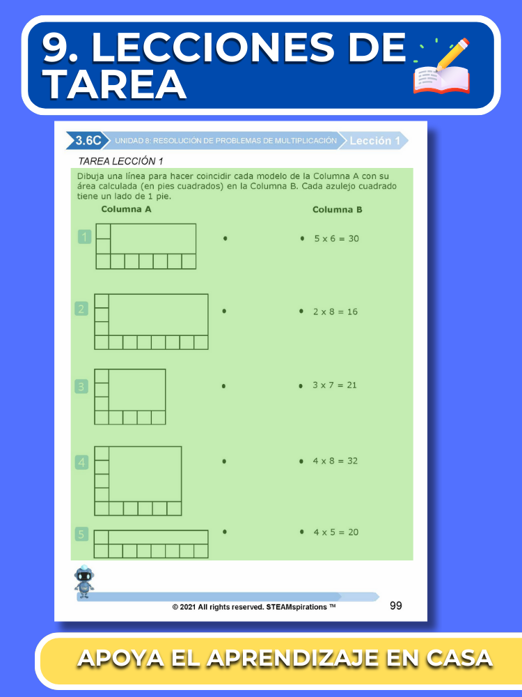 Construcción de Habilidades/Práctica Independiente: Las lecciones están diseñadas para fortalecer las habilidades matemáticas y las habilidades de resolución de problemas de los estudiantes a través de problemas de palabras, incluyendo preguntas STAAR 2.0 marcadas con un pequeño símbolo de estrella.