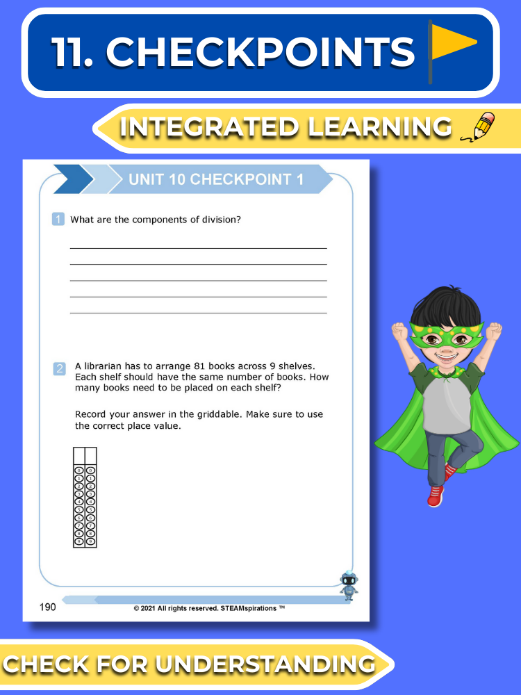 - Checkpoints: At the end of each lesson, checkpoints feature a writing exercise and a problem-solving question to assess comprehension and consolidate learning.