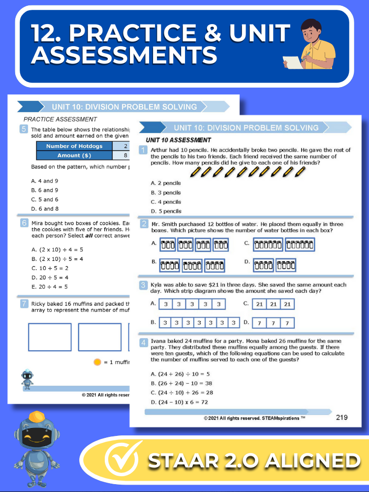 Practice and Unit Assessments: Reflecting the STAAR test's rigor, each unit includes a practice assessment and a comprehensive unit assessment featuring STAAR 2.0 questions.