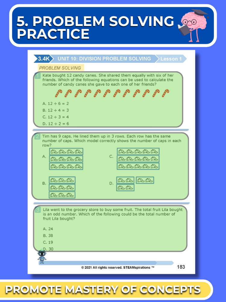 - Problem Solving Process: Each unit introduces students to a thought-provoking problem-solving process that stirs curiosity and enhances analytical thinking skills.