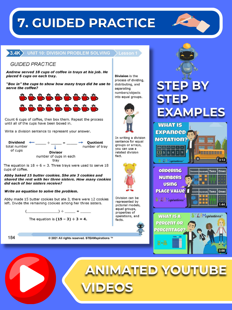 - Guided Practice: Every unit includes guided practice sections designed to effectively teach new TEKs/Skills. These can be utilized alongside our engaging animated instructional videos, enhancing the learning experience.