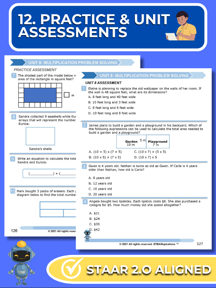 Practice and Unit Assessments: Reflecting the STAAR test's rigor, each unit includes a practice assessment and a comprehensive unit assessment featuring STAAR 2.0 questions.