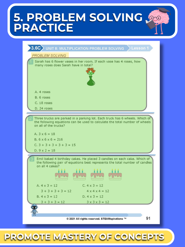 - Problem Solving Process: Each unit introduces students to a thought-provoking problem-solving process that stirs curiosity and enhances analytical thinking skills.