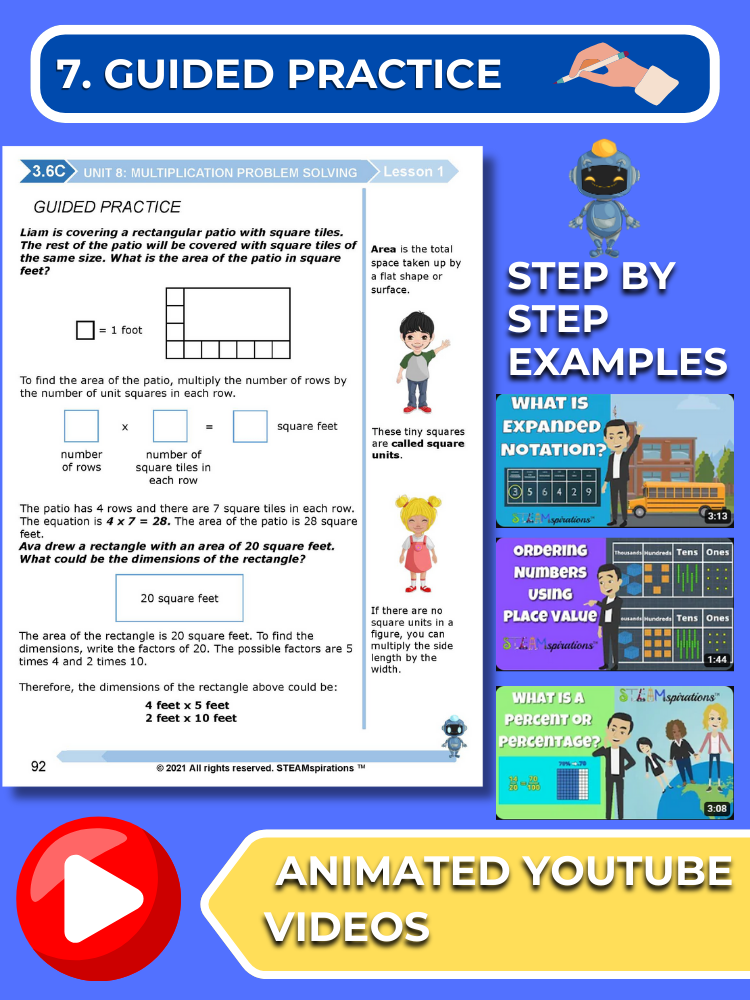 - Guided Practice: Every unit includes guided practice sections designed to effectively teach new TEKs/Skills. These can be utilized alongside our engaging animated instructional videos, enhancing the learning experience.