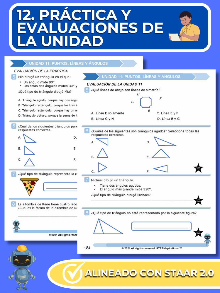 Prácticas y Evaluaciones de Unidades: Reflejando el rigor del examen STAAR, cada unidad incluye una evaluación de práctica y una evaluación de unidad integral con preguntas STAAR 2.0.